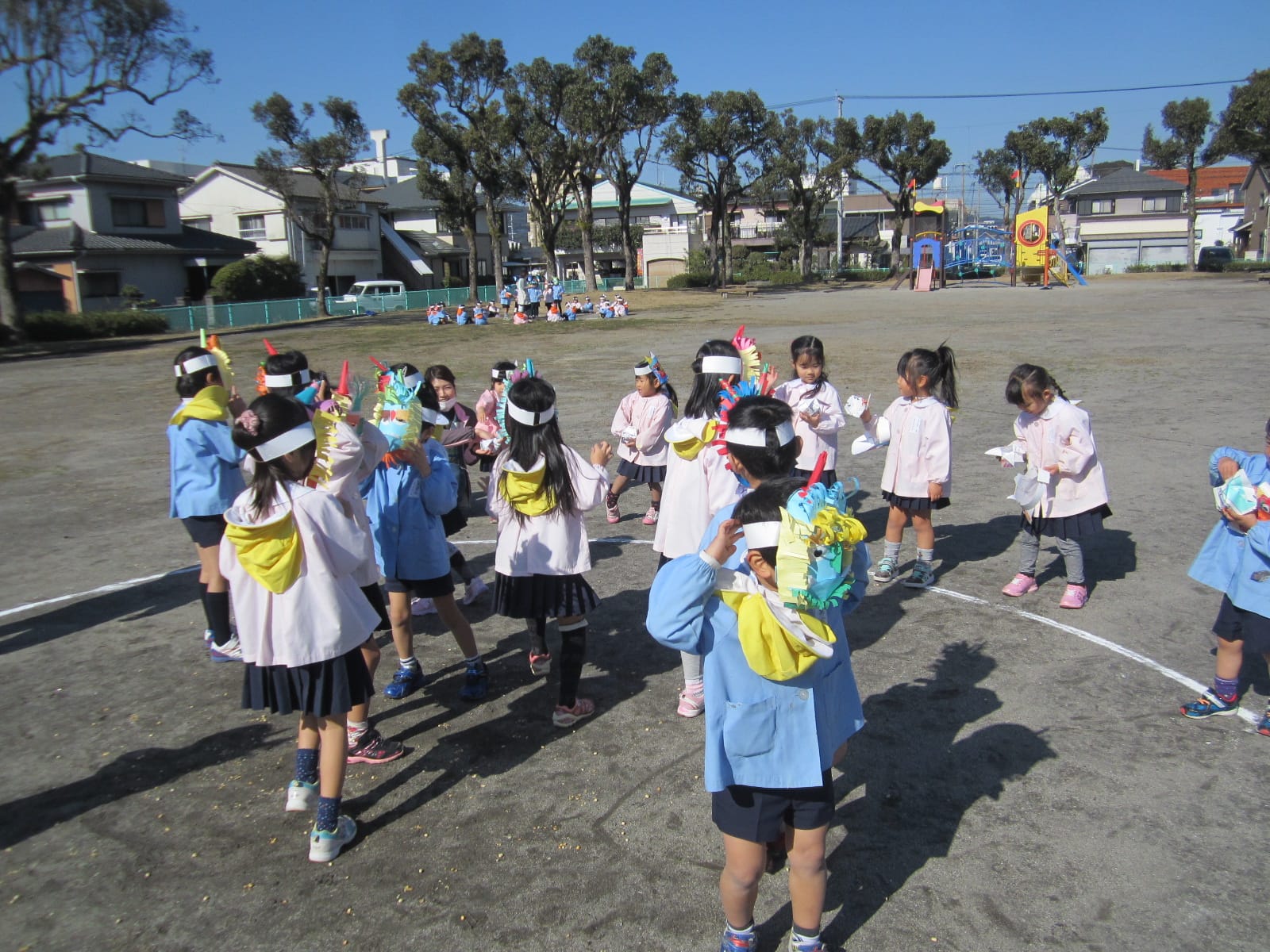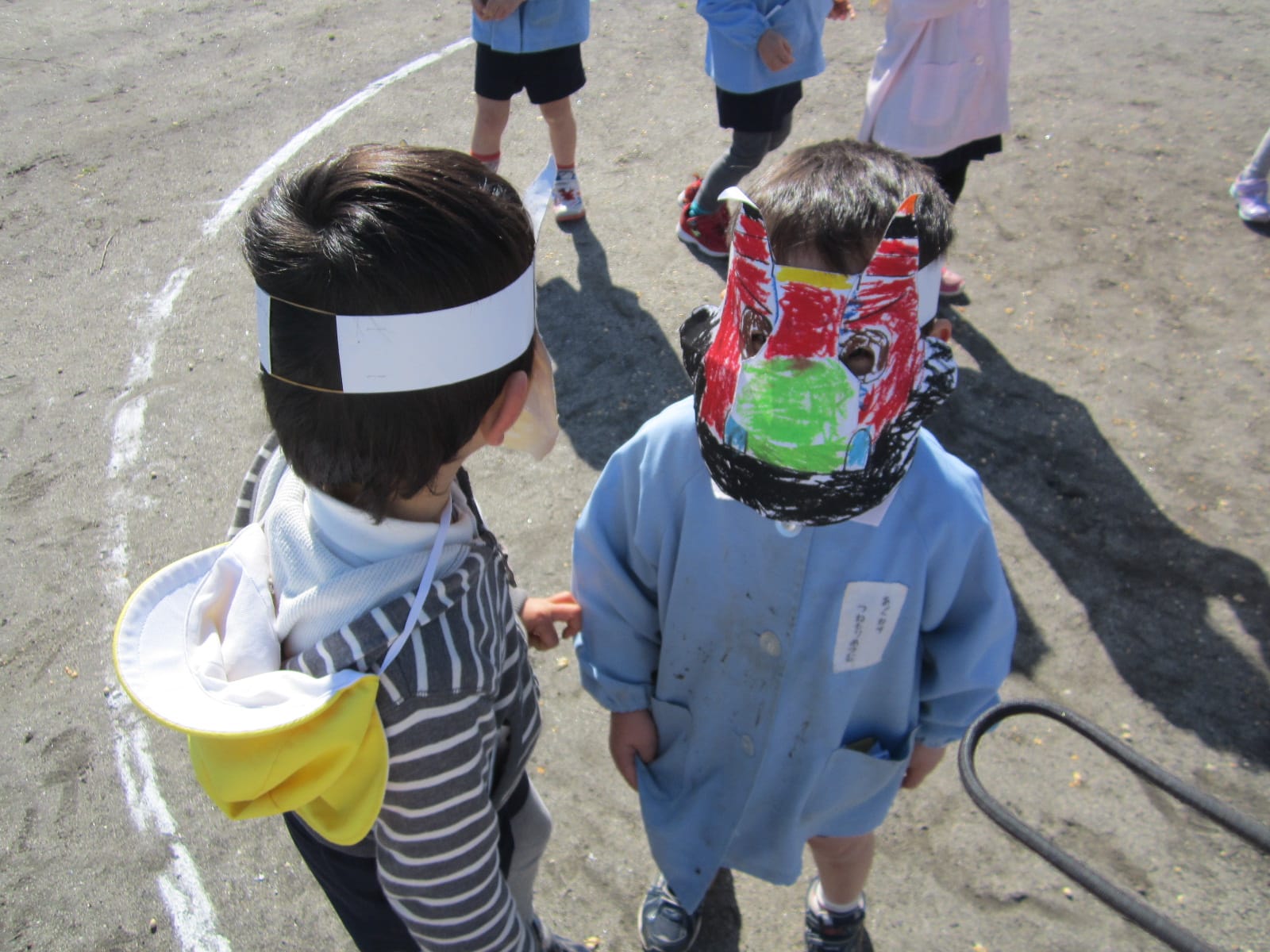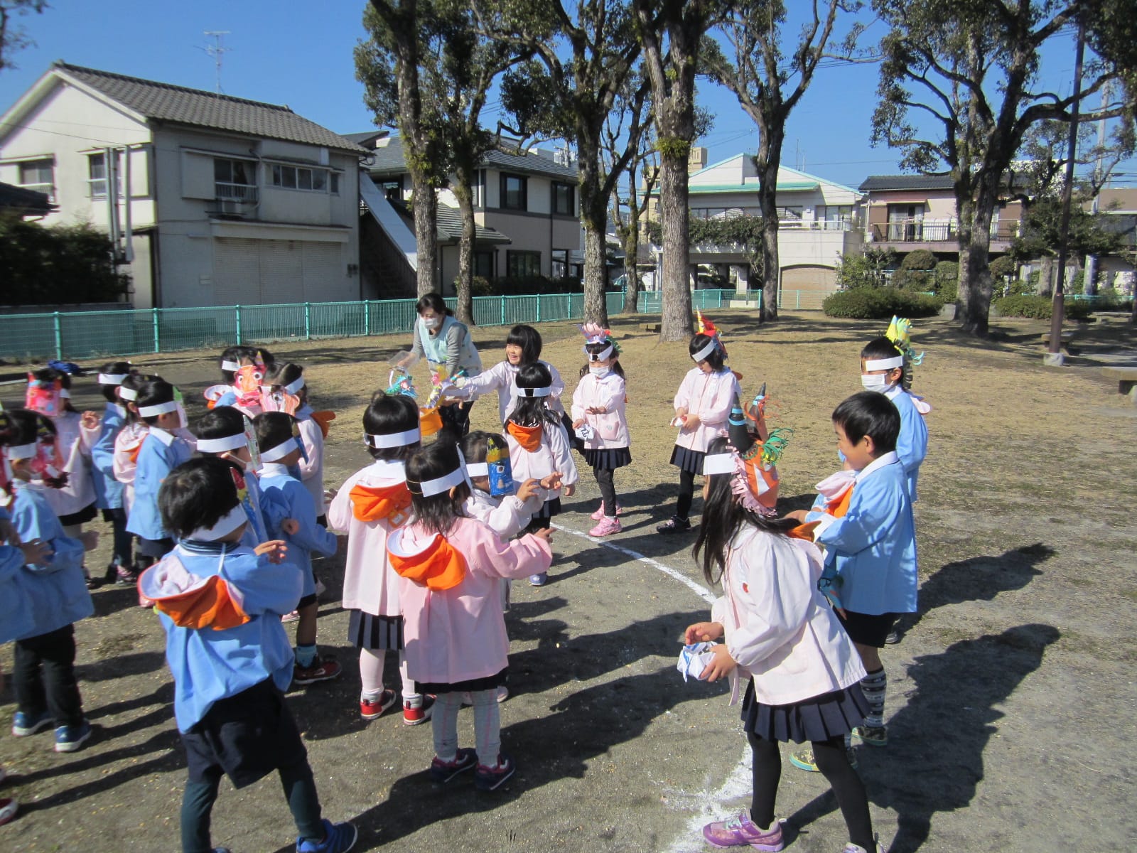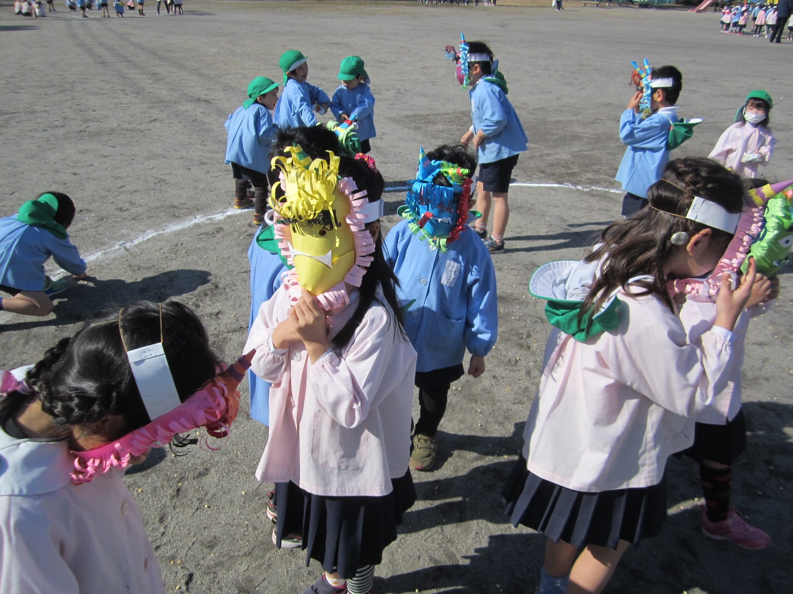 節分 ひまわりブログ2015.02.09色とりどりのおにのお面をつけた子どもたちが大集合!「おには外! 福は内!」去年の豆まきでは、おにが登場すると怖がっていたCさん・Dさんも、今年は、おにのお面をつけて豆まきをしました。経験を重ねるごとに、大きく成長している子どもたち!自分の中に住んでいる“泣き虫おに”“わがままおに”“おこりんぼうおに”を追い出せたかな? 7