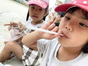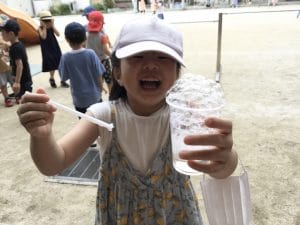 キャンプフャイヤーも外で行う事ができ、園生活ではあまりしない体験に