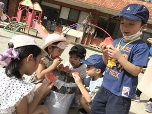 すいか割りを楽しんだ後、みんなで美味しくいただきました。