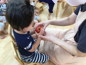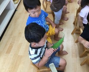 ある日「やさいのおなか」という絵本が大好きな子どもたちに、「みんなもやさいのおなか、見てみようか!」
