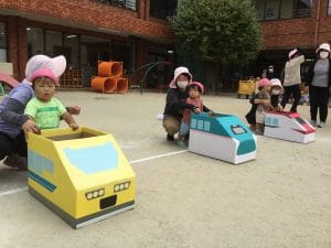 まりあ組さんは乗り物を押してスタート!★