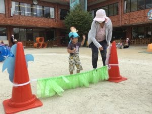 そこで10月12日(火)にらふぁえる組、てれじあ組、よはね組、まりあ組、で運動会ごっこをしました。