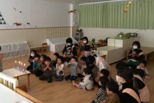 静かな雰囲気の中ろうそくを見つめお祈りもしました。