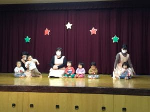 その後みんなでホールに移動し、クラス毎にお遊戯や指遊びの発表をしました!