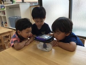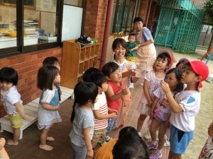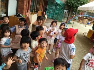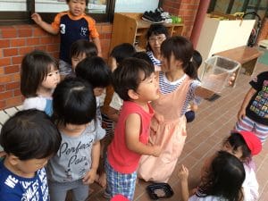 5月に幼稚園のお庭に咲いているパンジーのお花に