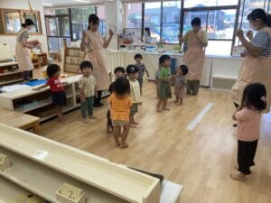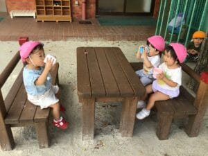 8月の保育 保育部2023.09.162024.07.17 暑い日の水遊びは最高✨遠くまで水を飛ばしちゃえ―――💦🍈パンメロンパン一つ買ってった♬♪茶いっぺ飲んで🍵さ~また遊ぼうっと😊♪めっちゃげんき体操、みんなで楽しいね✨♪