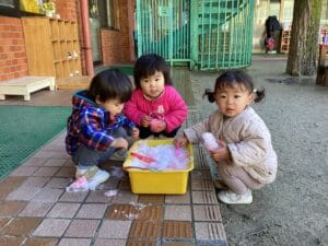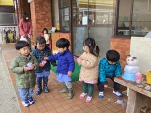 1月の保育 保育部2024.02.14 バスの先生が育てた桜島大根。「おっき〜ね〜」「しゅごいね〜」みんなの顔より大きい桜島大根にビックリ‼️ ある日の寒い朝❄️、先生の車に積もった雪で遊びました。雪だるま⛄️を作ったり、カップに雪を入れてカキ氷🍧を作ったりしました。 とっても冷たかったけど、美味しそうに出来たカキ氷……食べたかったな🍧