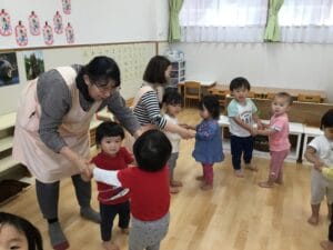 「いちごのなるころ♪」の歌に合わせてお友だちとのお遊戯です。