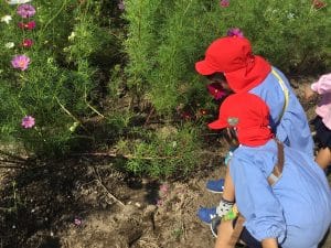 H30.10.18 コスモス園?〜ぺとろ&ぱうろ編〜 幼稚園部2018.10.182018.10.19 今日も神様によいお天気をいただいて、園バスに乗ってコスモス園に向かいました? 花びらはきっと8枚あるよね!本で見たんだ〜!と科学絵本でコスモスについて調べていたAさんたち、、、やっぱり8枚だね✨ くんくん、、いいにおい? じーっと虫を探すBさん! このお花は花びらがはなれているね! よく観察して絵を描いていました(^-^) 耳をすますと水の音がする、、川の音もする、、たくさんの五感を使った子どもたちでした☀️ 明日はくらら組さんが行ってきます♪