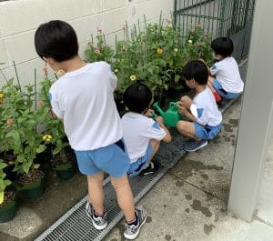 嬉しいな♪ 幼稚園部2022.06.302024.07.17年長さんが種を蒔き、大切に育ててきた百日草に色とりどりの花が咲きました?「ピンク色の花が咲いた!」「お花の形が違うね!」「お花が咲いて嬉しい✨」など、子どもたちの会話から、喜びが伝わってきました☺️ また、各クラスで育てている夏野菜も大きくなり、収穫することを楽しみにしている子どもたちです♪(オクラ、ピーマン、トマト、きゅうり、にがうり) 〜神様、たくさんのお恵みをありがとうございます〜