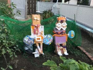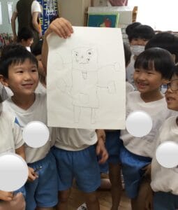 みんなで案山子のイメージを膨らませ、紙に絵を描きました。