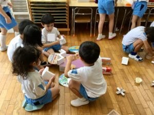 描いた絵を参考に、みんなで協力して作っていた子どもたち♪