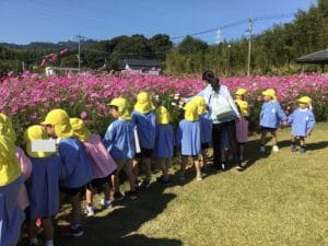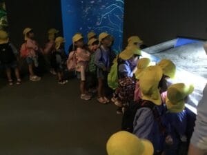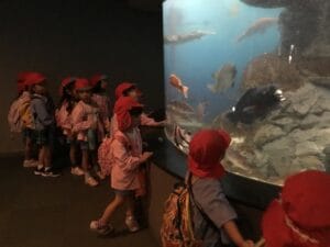園外活動に行ってきました♪ 幼稚園部2023.10.312024.07.17行楽の秋‼︎いろいろな所に行きました。 まずは10月20日、みんなで水族館へ1日遠足に‼︎「わぁ!!きれいな魚がいっぱいだね!!」 「どこに隠れているのかなぁ…」 「ほら!あそこにウニやヒトデ!!!」 沢山の海の生き物に出会うことができました! 10月下旬には、各クラスに分かれて、コスモス園に行ってきました♪「ピンクのコスモスきれいだね!」 「花びら8枚だ〜」「お花かわいいね🌸」 きれいなコスモスを見た後は、どんぐり探しや虫とりに夢中になる子どもたちでした。