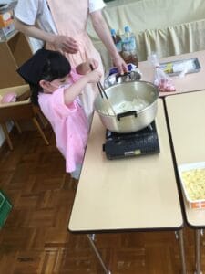 お友だち同士で確認しながら、皆で協力してカレーライスを作りました🍛