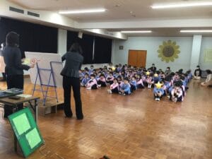 防犯教室も行われ、年長さんは進学に向けて自分自身を守る為の大事なお話をして頂きました。